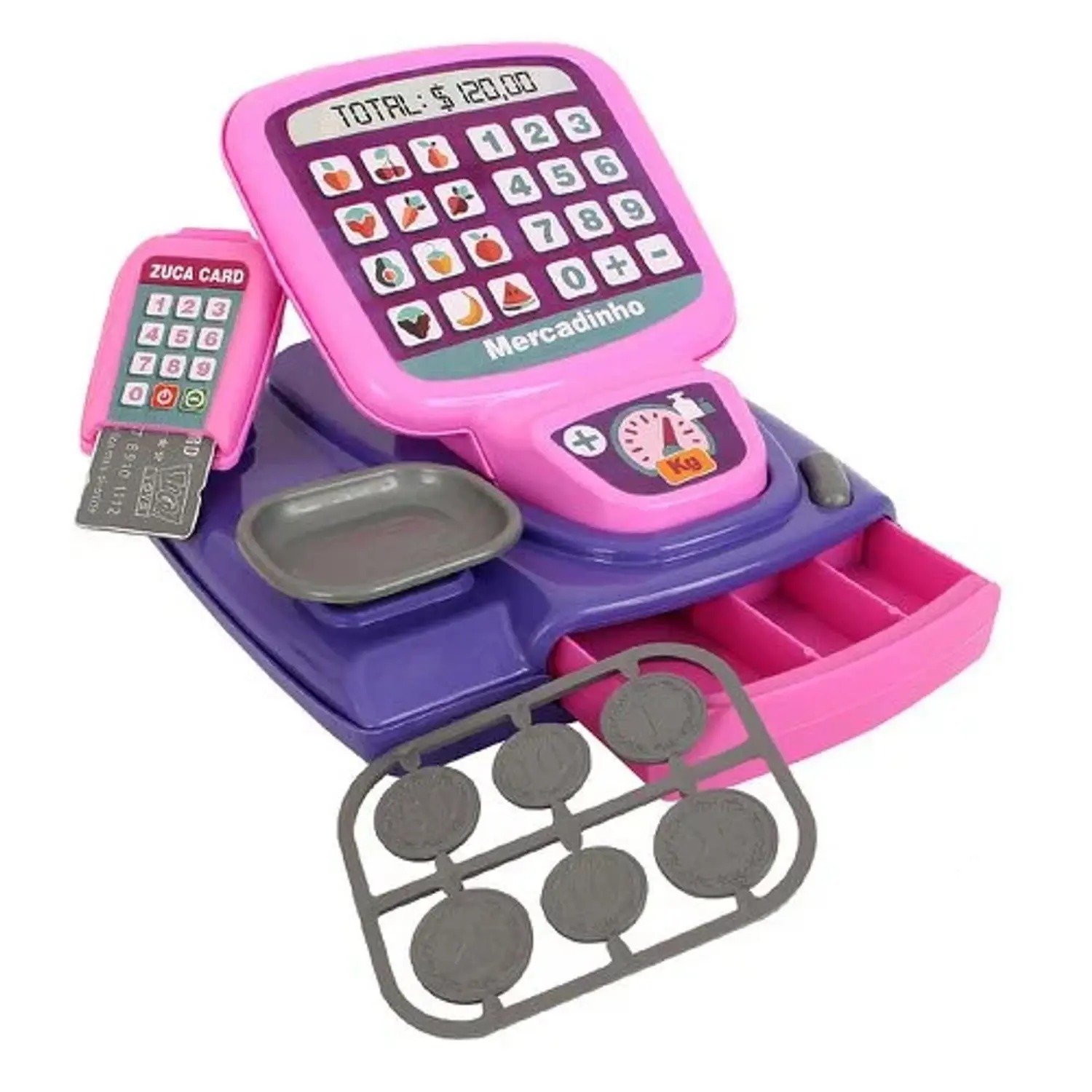 A Caixa Registradora, vem com diversos acessórios, para a brincadeira.